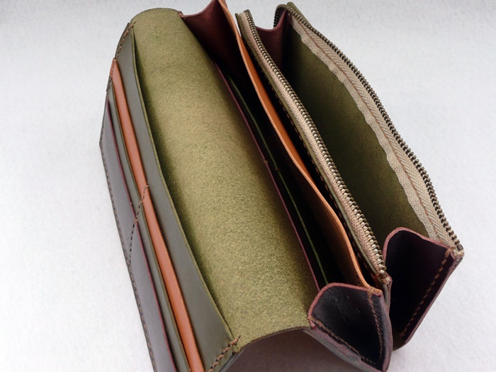 お札入れ小銭入れ後ろにマチ付き1つ 蓋裏部分に1つ